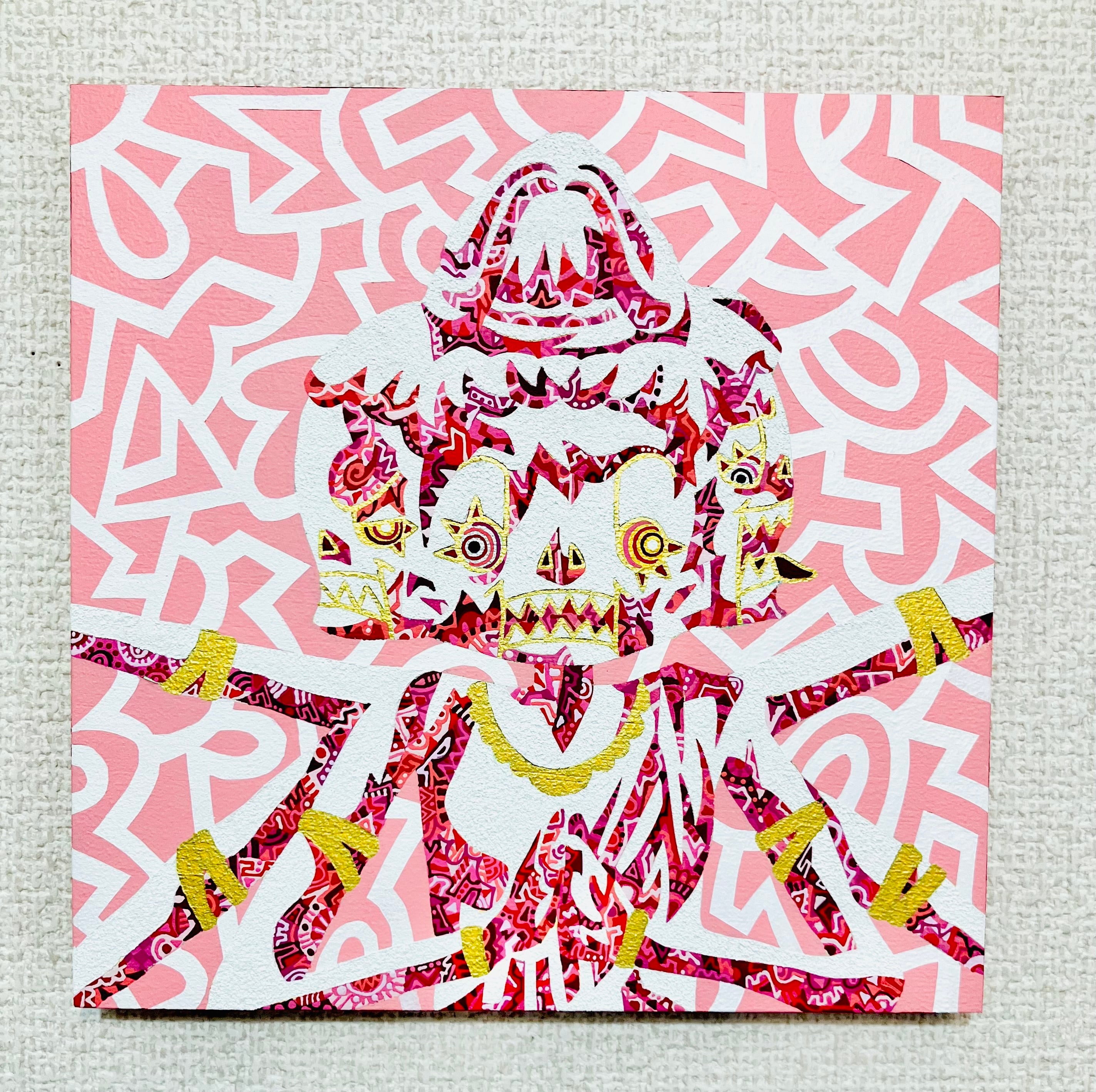 アクリルガッシュ、ペン、メディウム、木製パネル
